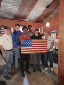 - During the first brunch last year, the Warren County Veterans Council Members Ed Burris, Gene Bailey and Debbie Brown accepted a gift of a wooden United States flag made by the youth from the Taylor Diversion program in Sheffield.