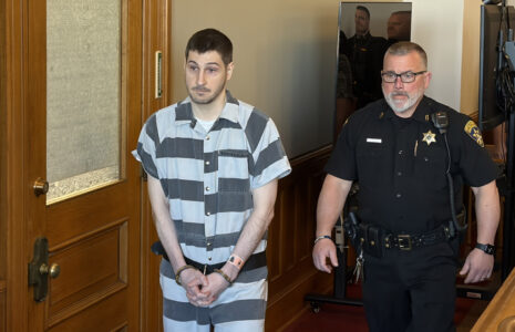 Michael Burham is pictured being escorted out of Chautauqua County Court on Monday after his sentencing.