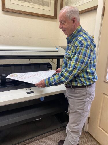 David See reviewing a plan just plotted on a Large Format Design Jet Plotter