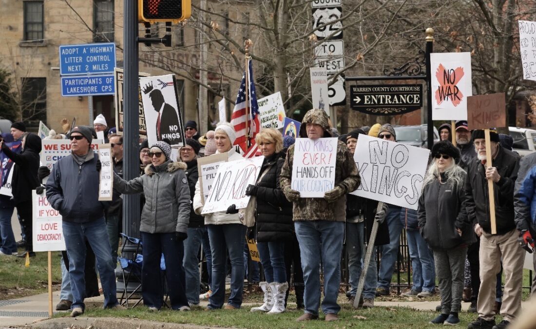 - Photos by Mark Evans Pictured are more than 300 who participated in the No Kings rally in Warren on Saturday.