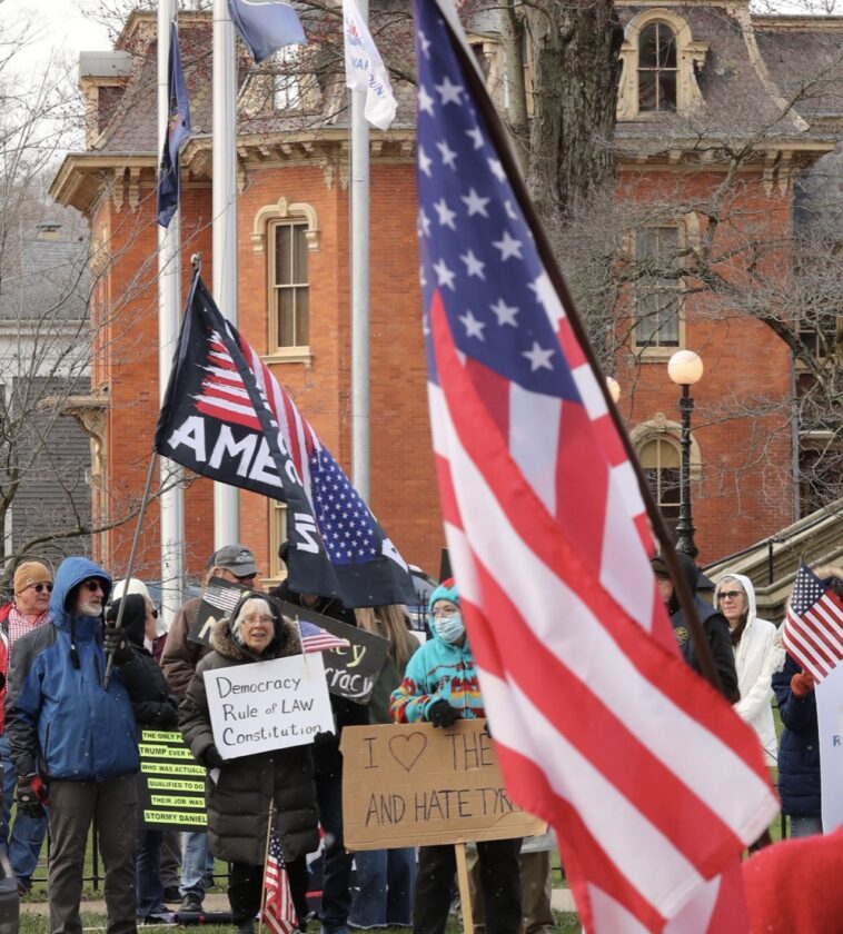 There were a few in disagreement that revved their engines in passing or yelled some comments in opposition. One couple did stop their car, put on their hazards and waved a pro-Trump sign.