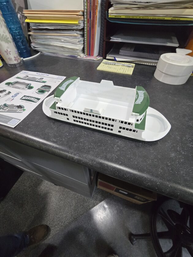 On March 26, “Good Morning America” on ABC did a report from T-Mobile Park in Seattle, home of the Mariners baseball team, on the opening day of baseball season. The reporter showed what he called “the best souvenir food container in baseball.” It was a plastic model of a Washington State ferry and it was filled with chicken tenders and French fries with dipping sauces on each end.