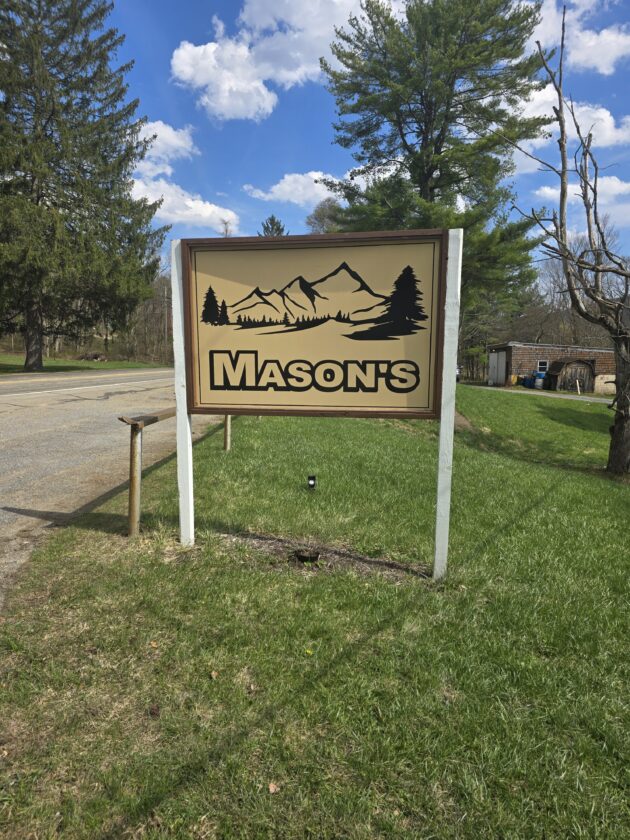 Pictured is the sign at the entrance of Masons Mobile Home Park.