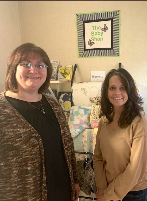 Women’s Care Center staff continues to offer support for women and is preparing for new mothers seeking support. Educational Coordinator Erin Sudul and Director Mary Brown are pictured here in the center’s “Baby Shop.” They are asking for donations of larger sized (4,5,6) diapers during April’s diaper drive held at the Crossings Cafe in downtown Warren.