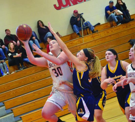 Sheffield’s Lexi Lyon goes up for a shot during Saturday’s game against Sheffield.