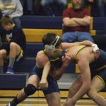 After dominating for most of the first two periods, Garrett Head was finally able to get Matt Posego’s shoulders to the mat to put the Knights on the board with a pinfall at 145.