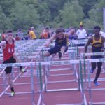 Eisenhower’s Jonah Samuelson competes in the 110 meter hurdles during Saturday’s District 10 Track and Field championships at Slippery Rock University. Samuelson went on to win the 300 hurdles and earn a trip to the PIAA championships for the second straight year.