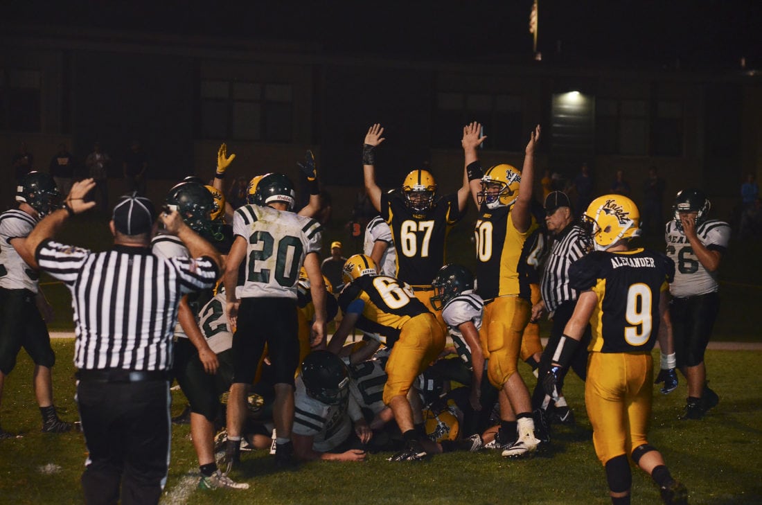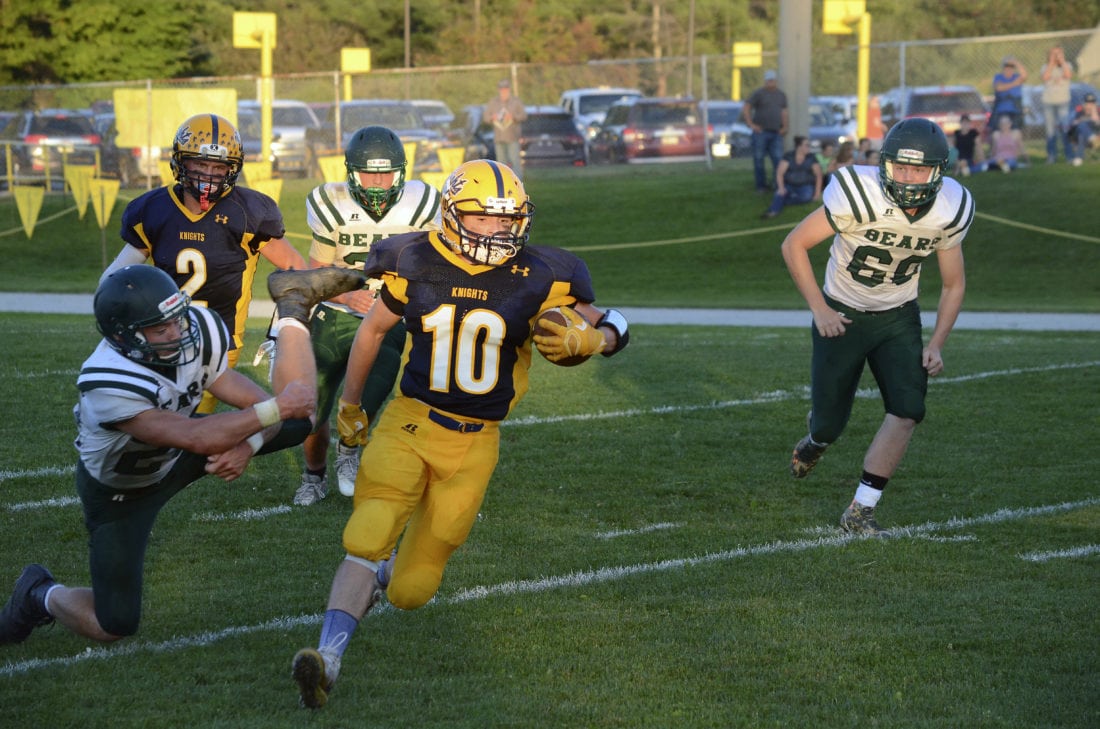 After struggling to move the ball last week against West Middlesex, the game couldn’t have started much better for Eisenhower. The Knights needed just seven plays to take the opening possession into the end zone. On first down from the Bears 37, Nate Holt came around the edge, broke a pair of tackles and raced down the sideline.