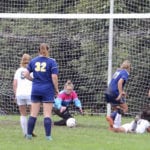 Down a goal and trying to push for more scoring chances late in the game, the Lady Knights turned the ball over near midfield. Iroquois got a throw from just above the right corner. The ball went to center, but got caught in a pair of defender’s feet. Courtney Kegerreis came up behind the defense, picked the ball out and fired it to the short side for a 2-0 Braves advantage with just 1:34 to play.