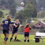 - Times Observer photo by Brian Hagberg Eisenhower’s Caroline Smelko (17) and Iroquios’ Cassidy Shannon (8) try to head the ball during the first half of their match at Eisenhower High School, Wednesday, Sept. 26, 2018. The Braves scored in the openening and closing two minutes of the match to grab a 2-0 win over the Knights.