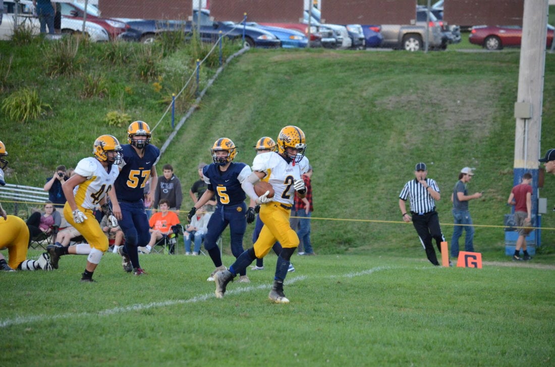 Jared Beers’ interception set the Knights up at Saegertown’s 30 and Cael Black capped the 5-play drive with a 7-yard touchdown run to put Eisenhower up 52-0 with 5:17 to go.