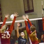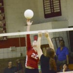 - Tidioute’s Nakiesha Krouse goes up for a kill.