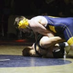 Falconer got the points right back with Jordan Dustin’s 6-1 decision over Ethan Chambers at 170, Hudson Jordan’s pinfall win over Tristen Wilcox at 182 and Collin Beichner’s win via forfeit at 195.