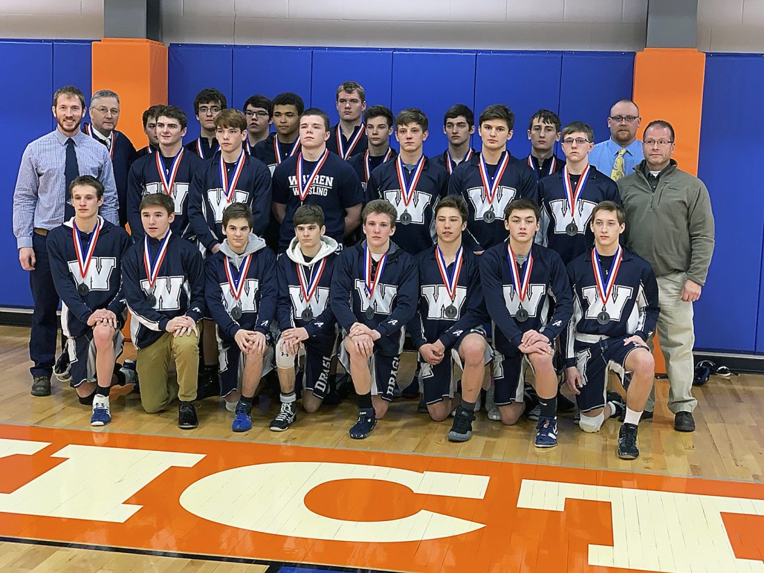 - Photo submitted to the Times Observer Warren wrestlers and coaches show off their silver medals following the District 10 Class 3A Team Dual Championships at the Hagerty Family Events Center, Wednesday, Jan. 30, 2019. The Dragons won their semifinal match against Meadville, 36-30, to advance to the finals of the District 10 Class 3A Team Dual Championships. The Ramblers took home the D-10 team title and moved on to the PIAA state tournament with a 55-15 win over the Dragons.