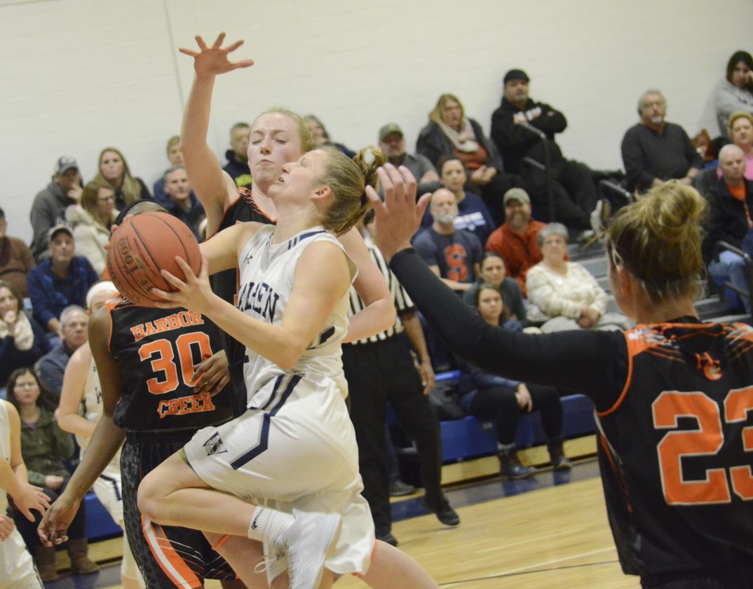 Those were Ruhlman’s only two points of the game, and they were clutch. She spent much of her time defending and boxing out Harbor Creek’s 6-foot senior, Latisha Baker.