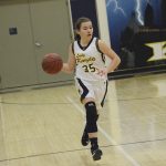 Eisenhower’s Maddie Sleeman brings the ball up during Monday’s game against Maplewood at Eisenhower High School. Maplewood earned a 67-35 win.