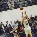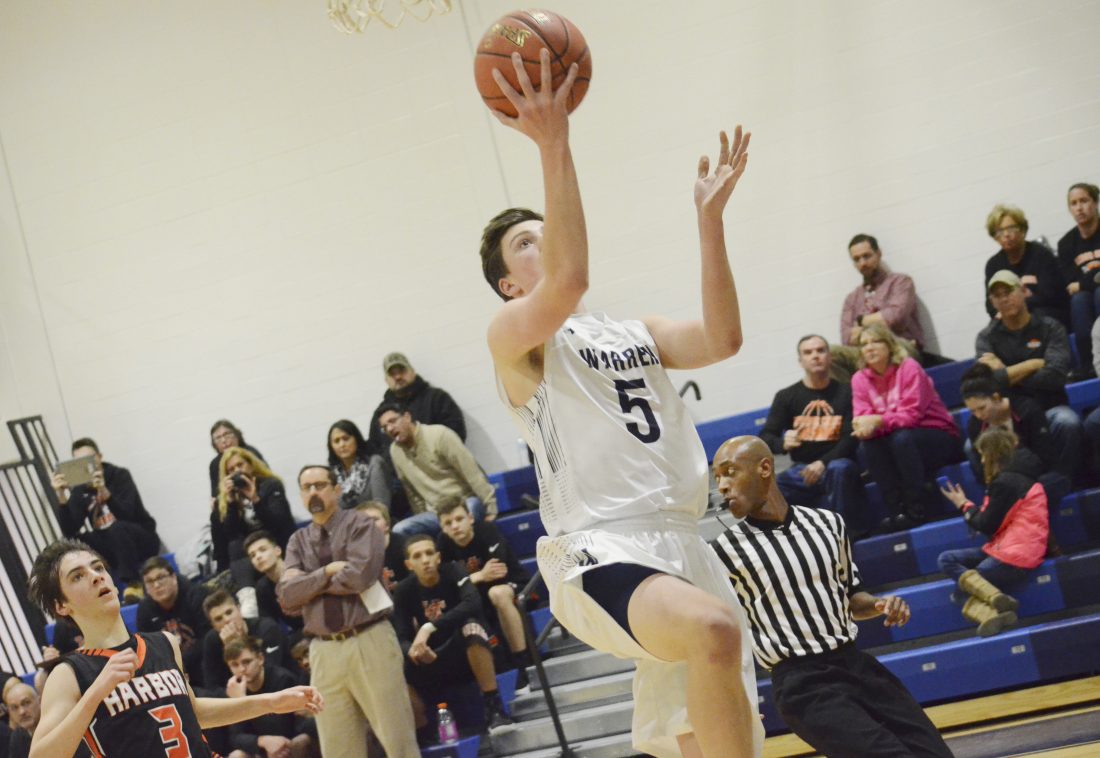 Times Observer photo by Andy Close Warren’s Caleb Ei follow through on a 3-pointer in the second quarter against Harbor Creek.