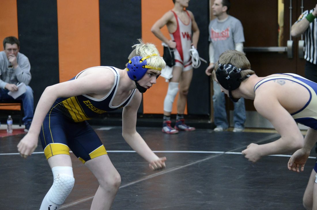 Eisenhower’s Logan Jaquay captured the District 10 title at 113 pounds, beating General McLane’s Andrew Brest in the final. Jaquay is one of six Knights who qualified among the top eight for the Northwest Regional in Sharon.