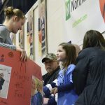 Warren senior Margo Loutzenhiser (left) discusses the finer points of basketball with kindergartener Paiton Jones, 6, prior to Monday night’s matchup at Warren Area High School. Jones brought a homemade sign supporting Loutzenhiser, who played her final home game as a Lady Dragon. Loutzenhiser assisted Jones with her jump shot following the Warren victory, picking up where they left off during the Warren Lady Dragon Basketball Camp in January.