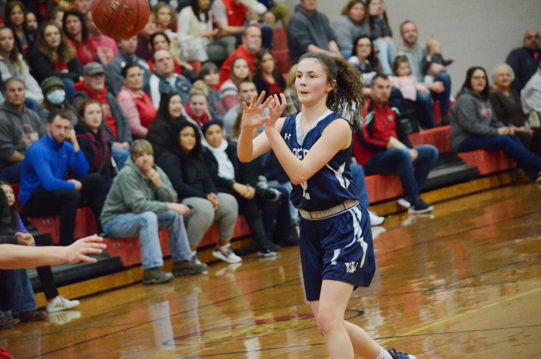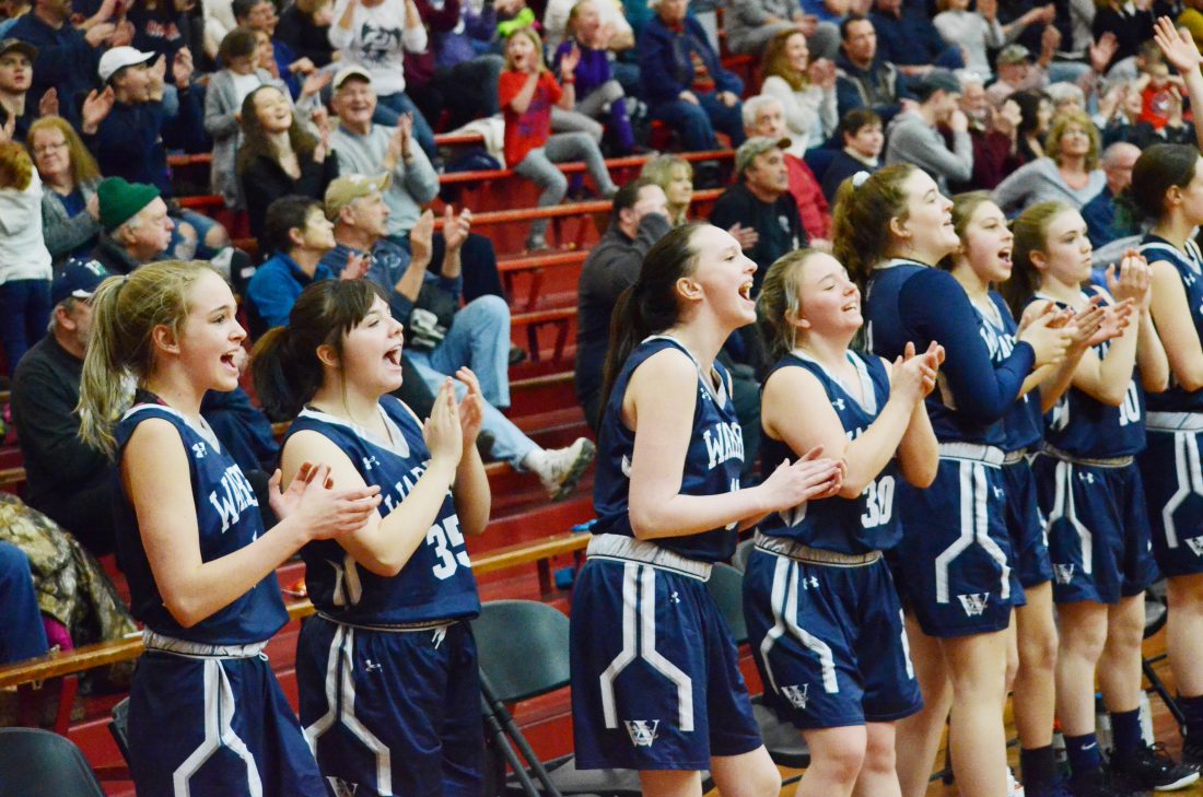 MEADVILLE, Pa. – Warren coach Lisa LaVan and sophomore guard Kelsey Stuart embraced on the bench, while the five Warren Lady Dragons on the court – Margo Loutzenhiser, Alanna Hultberg, Taylor Childress, Emma Ruhlman and Riley Childress, couldn’t contain their smiles, just waiting for the final seconds to tick off the clock.