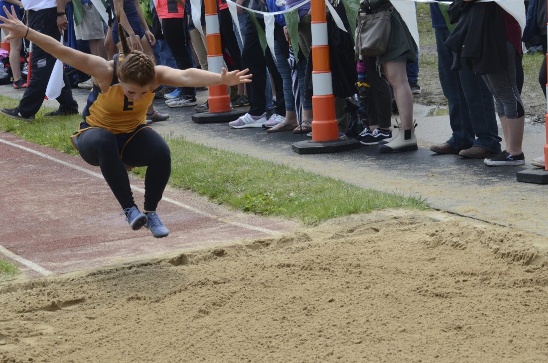 - Eisenhower’s Delaney Nizzi soars in the long jump during the District 10 Track and Field Championships on Saturday at Slippery Rock University.