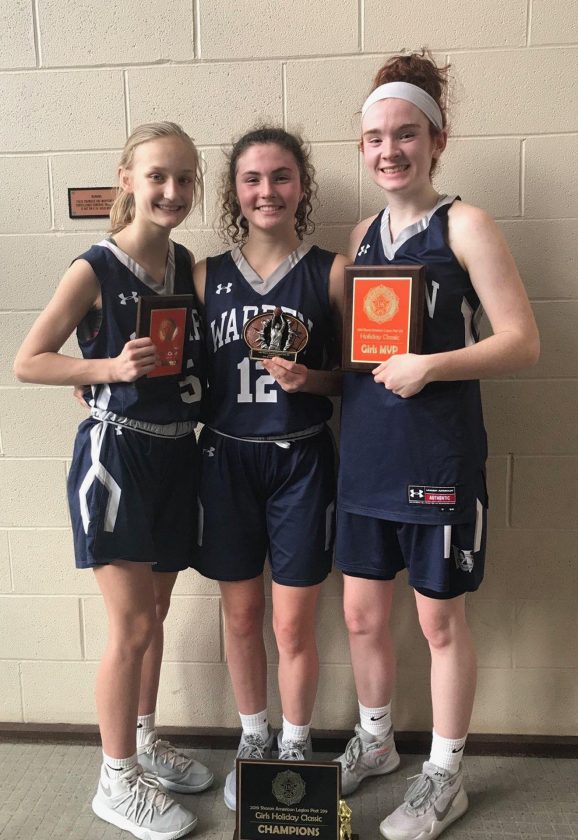- From left, Warren’s Carly Beers (6th man award), Riley Childress (all-tournament team) and Emma Ruhlman (tournament MVP).