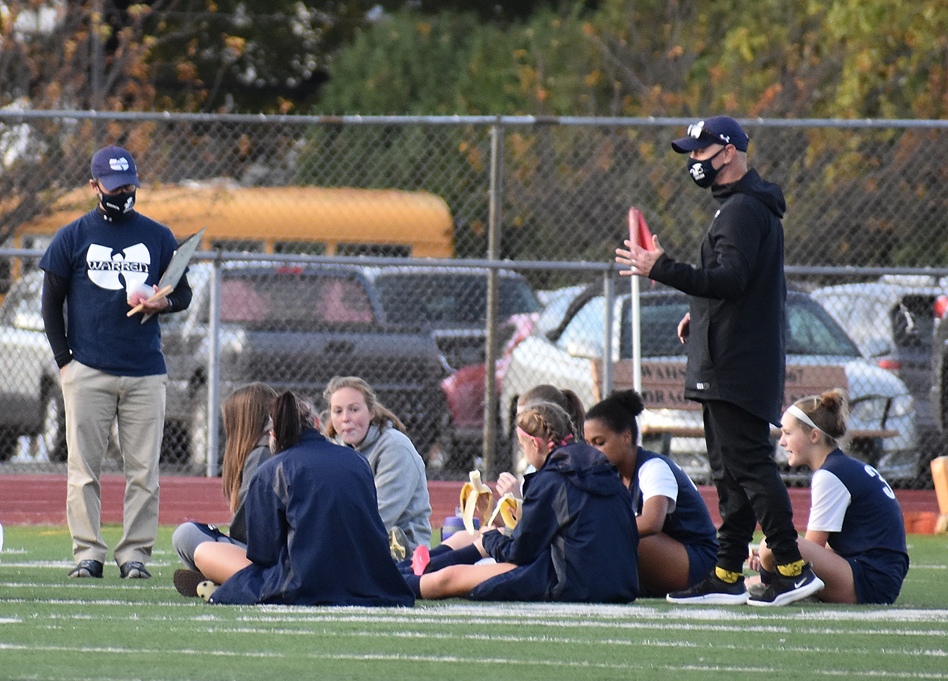 Times Observer File Photo by Jay Young In this file photo from earlier this season, Warren girls soccer coach Jeremy Bickling addresses the team during halftime.