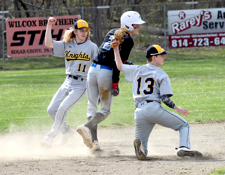 The Knights’ only other base runner in the game came with one out in the bottom of the sixth inning when Alexander walked — Cunningham’s first base on balls of the season. Again the Cambridge Springs right-hander got out of the inning with a ground out to second base and a ground out to third base.