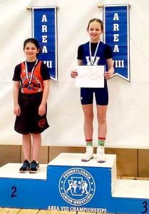 Photo submitted to Times Observer Currently wrestling in Tulsa, Oklahoma at 93 lbs., Beaty Warren Middle School’s Jenna Kophazy is as active as it gets.