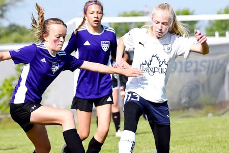 - Photo courtesy of Deborah Gigliotti of GnG Photography Morgan Alexander battles as Meea Irwin moves into position during Kinzua Queens action at The Memorial Day Classic in Erie.