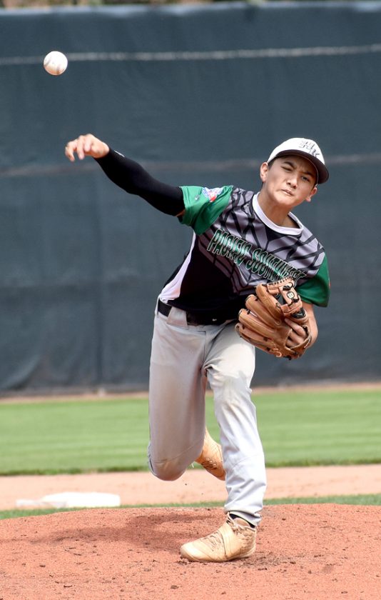 Times Observer Photo by Matt Spielman Hawaii Kai, Hawaii starting pitcher Alika Ahu delivers to the plate during the first inning against West Fargo, North Dakota during Game 9 of the Babe Ruth 13-year-old World Series on Monday at Diethrick Park in Jamestown, N.Y.