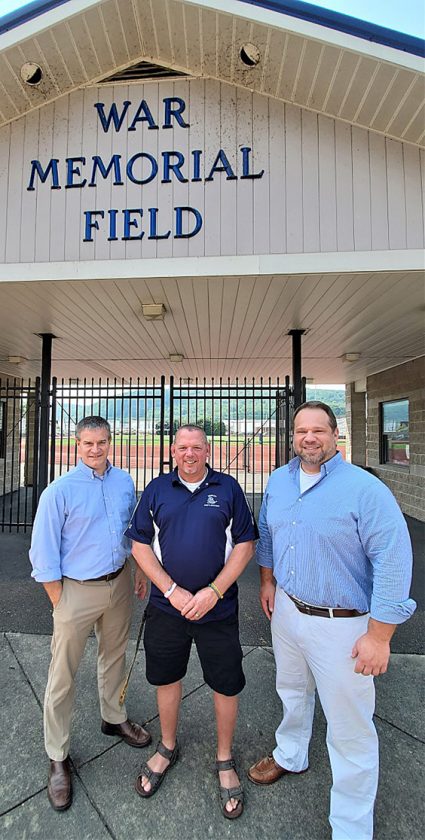 Times Observer Photo by Brian Ferry From the left are Warren Sports Boosters Dave Adams (vice president); Rick Nowacki; and Michael Boyd (president). They hope the War Memorial Field capital campaign will help to bring the facility back to premier status.