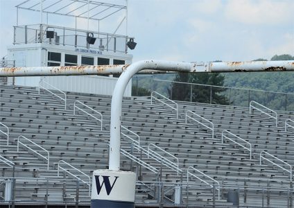 From a distance, War Memorial Field appears to be what it once was — a beautiful, up-to-date, community athletic facility, supporting football, soccer, track, marching band, the Warren County YMCA, and others.