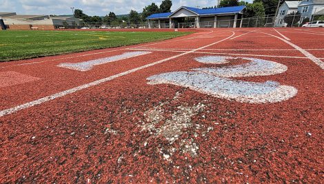 The track has been patched about as much as it can. Areas along the finish line – also the start line for any race that includes a multiple of 400 meters – is worn down to asphalt.