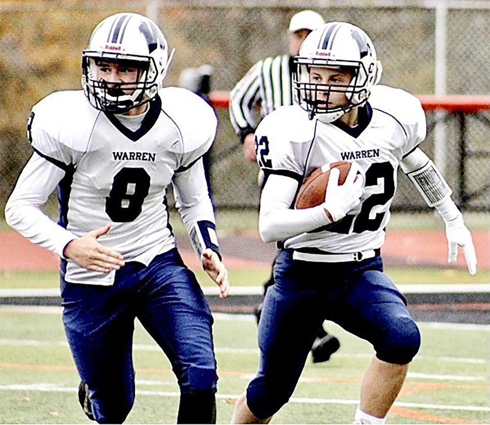 Times Observer File Photo From the left are Warren senior quarterback Landon Douvlos and sophomore running back Tommy Nyquist.