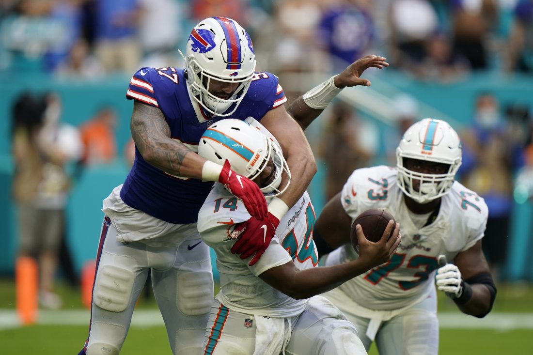Epenesa isn’t the only player blossoming along Buffalo’s defensive line. First-round pick Greg Rousseau had his first two career sacks against Miami. Veterans Jerry Hughes and Mario Addison have led the way and the overall unit has been much improved compared to one year ago.