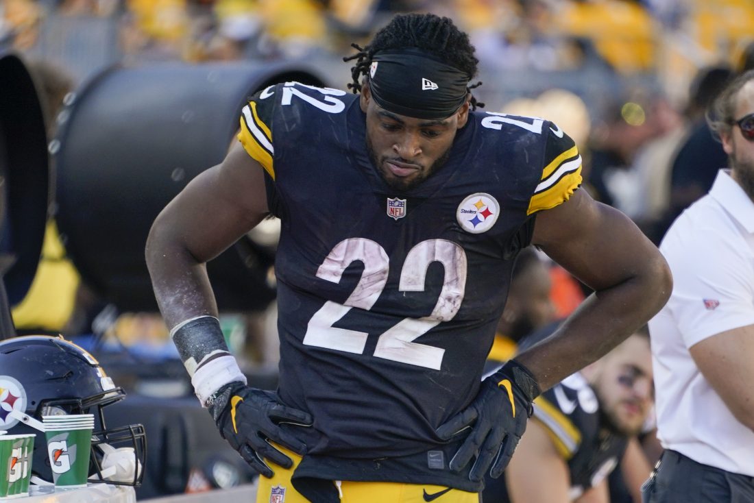 AP Photo Pittsburgh Steelers running back Najee Harris (22) looks down on the sideline as his team is losing to the Cincinnati Bengals during the second half Sunday in Pittsburgh.