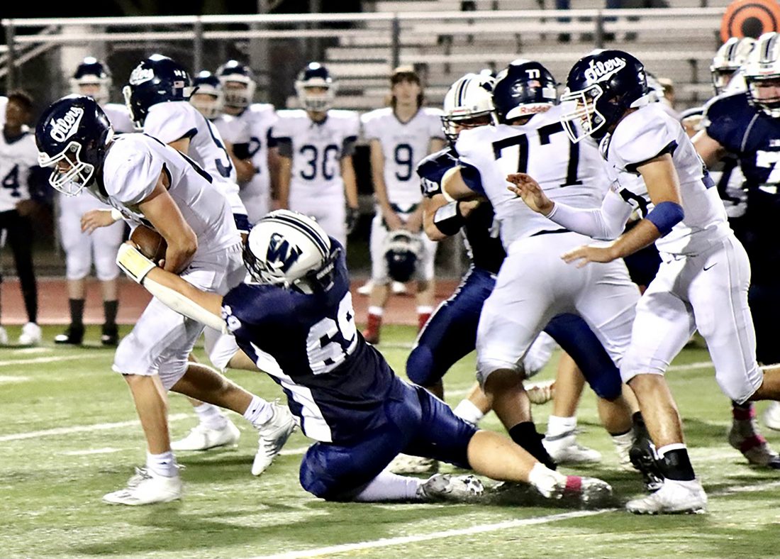 Warren seniors Ben White (9) and Easton Hultberg (69) were voted Region 5 first-team all-stars on both offense and defense. Times Observer photos by Jon Sitler