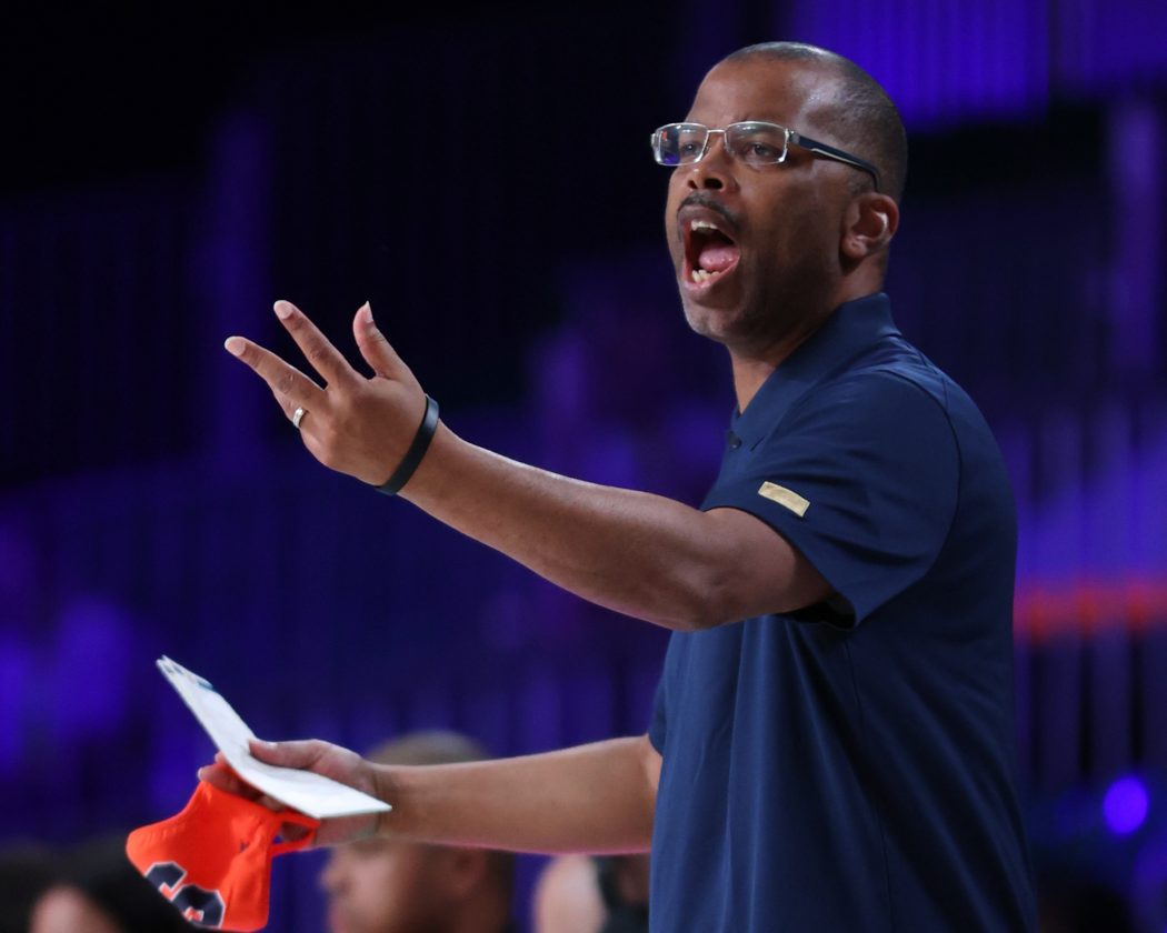 In a photo provided by Bahamas Visual Services, Syracuse coach Vonn Read gestures during his team’s game against Buffalo at Paradise Island, Bahamas on Monday. AP Photo