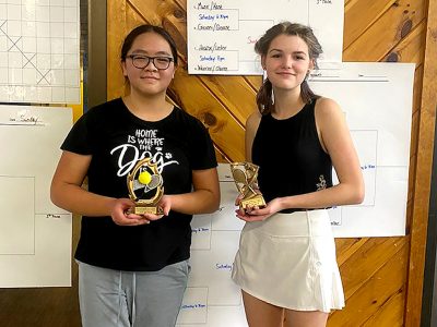 - Rising Stars Girls finalists: Eileen Cui, left, and Gilen Gottinger. Cui beat Gottinger 4-0. Submitted photo