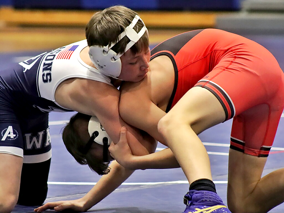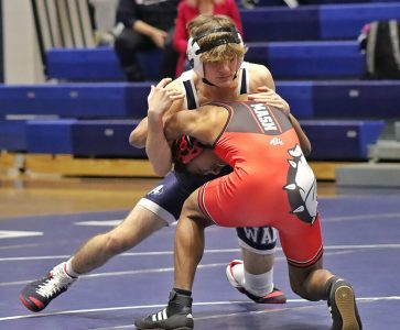 - Times Observer Photo by Cody Elms Warren’s Adika Fiscus, left, battles Ben Fuller at 106 pounds in Meadville’s 57-12 Region 5 win Wednesday at Warren Area High School.