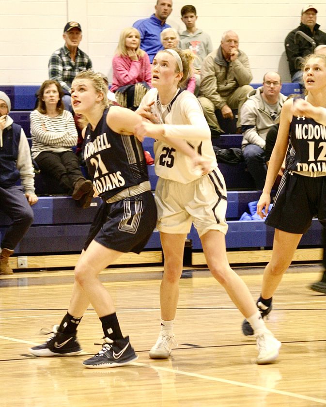 - Times Observer Photo by Jon Sitler McDowell’s Sadie Feronti (21) boxes out Gracie Ruhlman during the Dragons’ 32-26 Region 6 win on Tuesday at Warren Area High School.