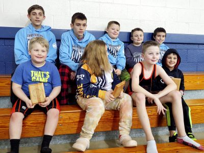 Submitted Photo The Sheffield Wolverines youth wrestlers competed at the Brookville Open and Novice Tournament this weekend. Nine of the 10 Wolverines who wrestled finishes with place finishes.