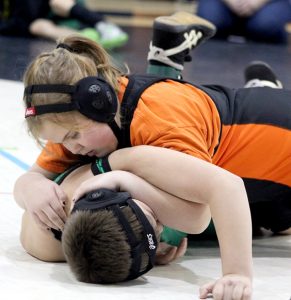 Kaelon Connolly wrestled in two brackets. First, she wrestled in the all-girls division taking second place. She then wrestled in the boys 12U Open Division and took third place.