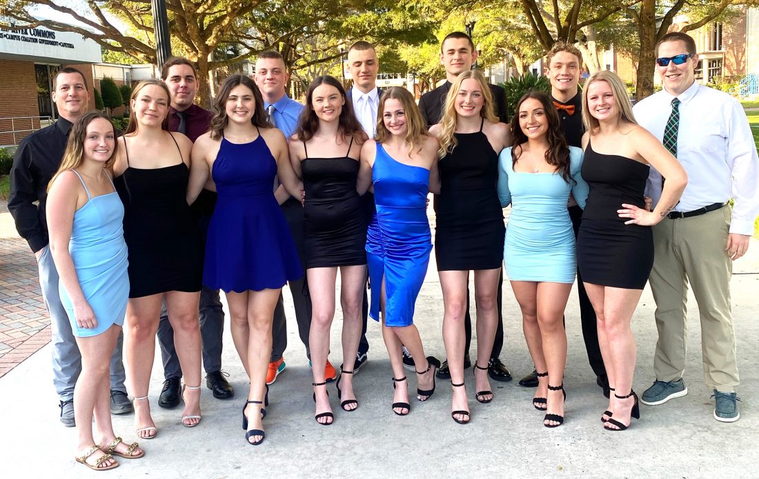 Pictured is the Jamestown Community College swim team at the banquet prior to the start of the national championships at Indian River College in Florida. The Jayhawks begin the prelims today at 9:30 a.m. Submitted Photo