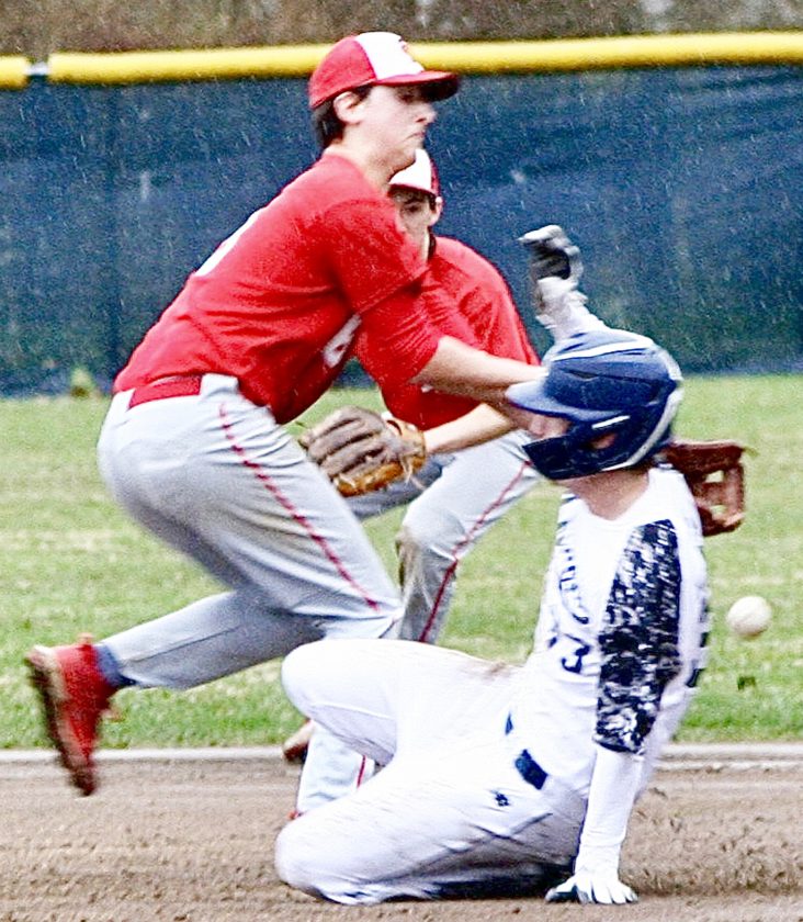 Warren’s Konnor Hoffman steals second base in a 7-3 Region 5 victory over General McLane, Monday at Old Legion Field. Times Observer Photo by Jon Sitler