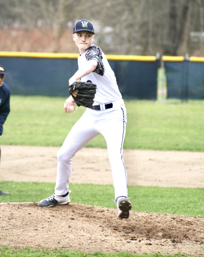- Warren sophomore starting pitcher Brady Berdine got the win on the hill on Monday at Old Legion Field in a 7-3 Region 5 victory over General McLane. Times Observer Photo by Jon Sitler