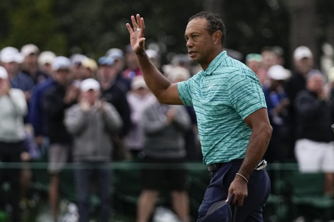 - AP Photo Tiger Woods waves to the gallery after putting out on the 18th green during the second round at the Masters golf tournament on Friday in Augusta, Ga.