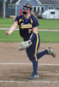 - Eisenhower’s Taylor Napolitan delivers a pitch to the plate during Thursday’s softball game. Times Observer Photo by Steve Younger