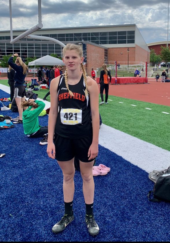 Submitted Photo Sheffield sophomore Emily Foster is the No. 20 seed out of 28 competitors as the PIAA Track & Field Championships get underway this morning at Shippensburg University’s Seth Grove Stadium.